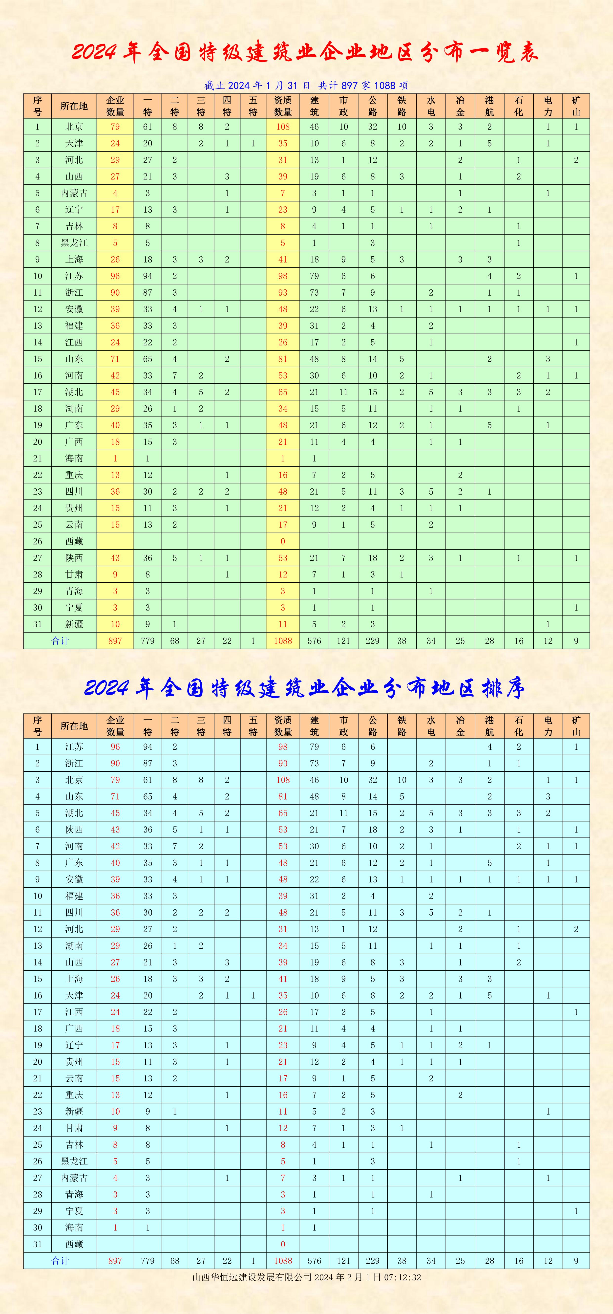 【行业资料】2024年全国特级资质建筑业企业名单