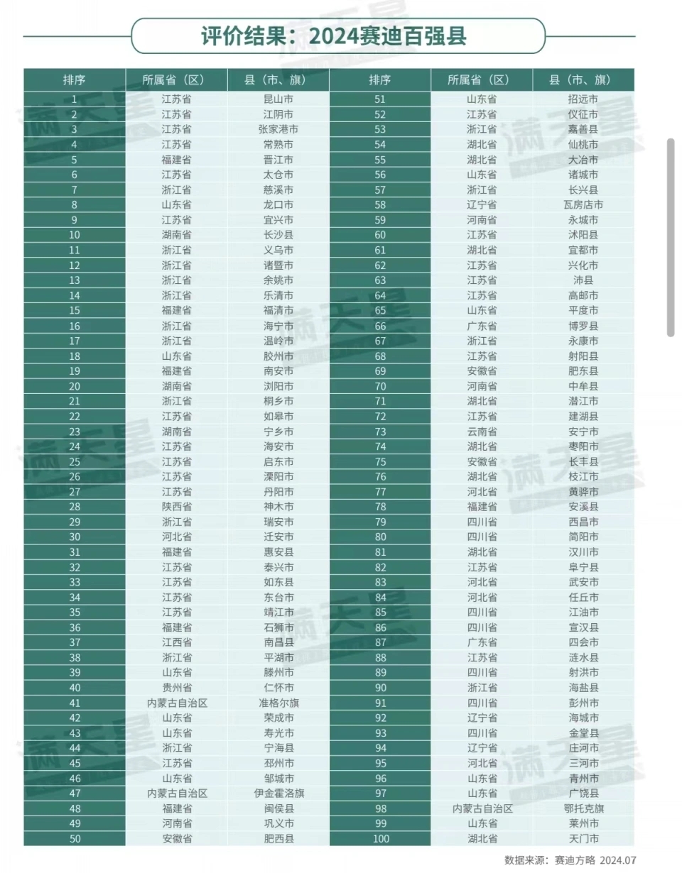 ——地域分布更广了。59个“千亿县”中,东部44个、中部8个、西部6个、东北1个。这和以前“千亿县”基本都集中在东部沿海地区相比发生了很大变化,中西部地区千亿县加速涌现,县域经济在省内扮演的角色更为重要。这也是新时代以来深入实施区域协调发展战略、区域重大战略的结果。