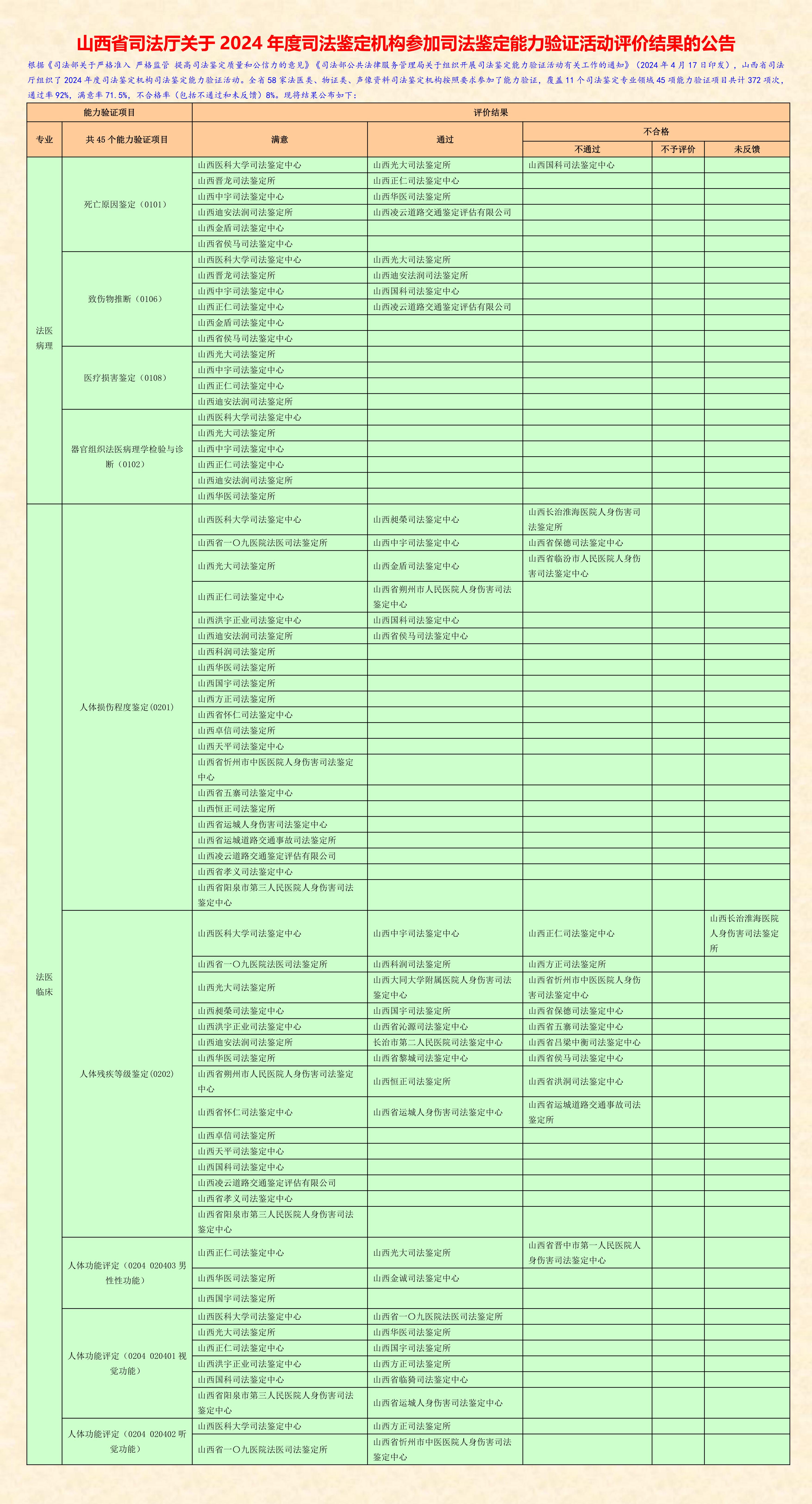 本报讯 司法鉴定能力验证活动是对司法鉴定机构的“年度大考”。12月20日,省司法厅消息,我省58家司法鉴定机构参加了2024年度能力验证活动,按照“满意”“通过”“不合格”三档评估标准,评价结果现已公布。