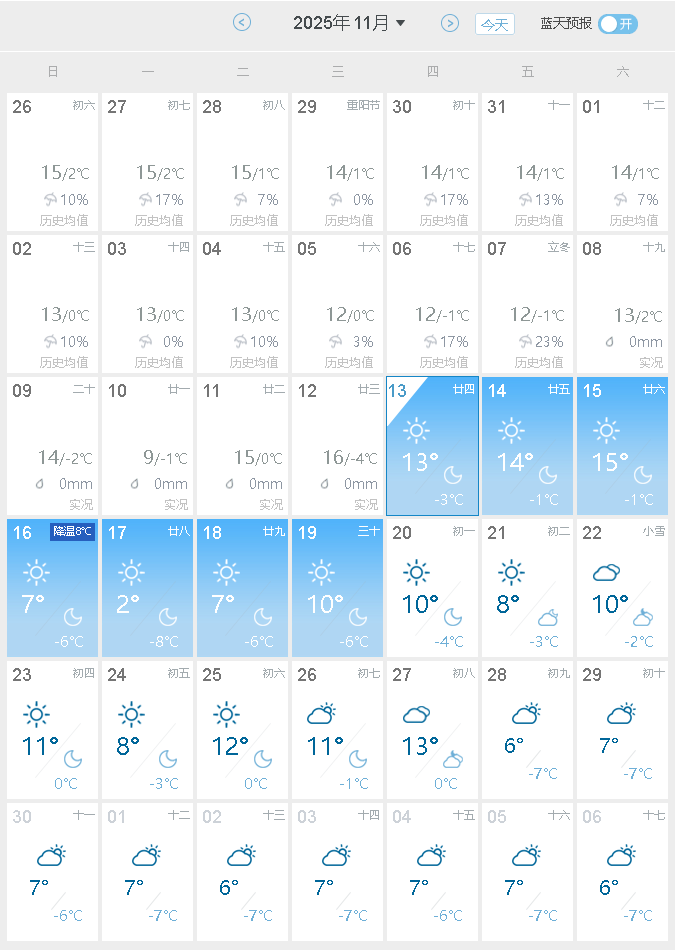 其中14-17日,中东部地区将迎来今年下半年首场寒潮天气过程,此次寒潮具有影响范围广、降温幅度大、大风天气显著、降水整体不强等特点。受其影响,14-17日,我国北方和中东部地区气温将普遍下降6~10℃,内蒙古中西部、陕西南部、重庆北部及江南中东部等地降温12~14℃;18日早晨,最低温度0℃线将南压至苏皖南部、湖北北部一带。上述大部地区有4~6级风、阵风7~8级,新疆北部山口地区、内蒙古东南部局地阵风9~11级。