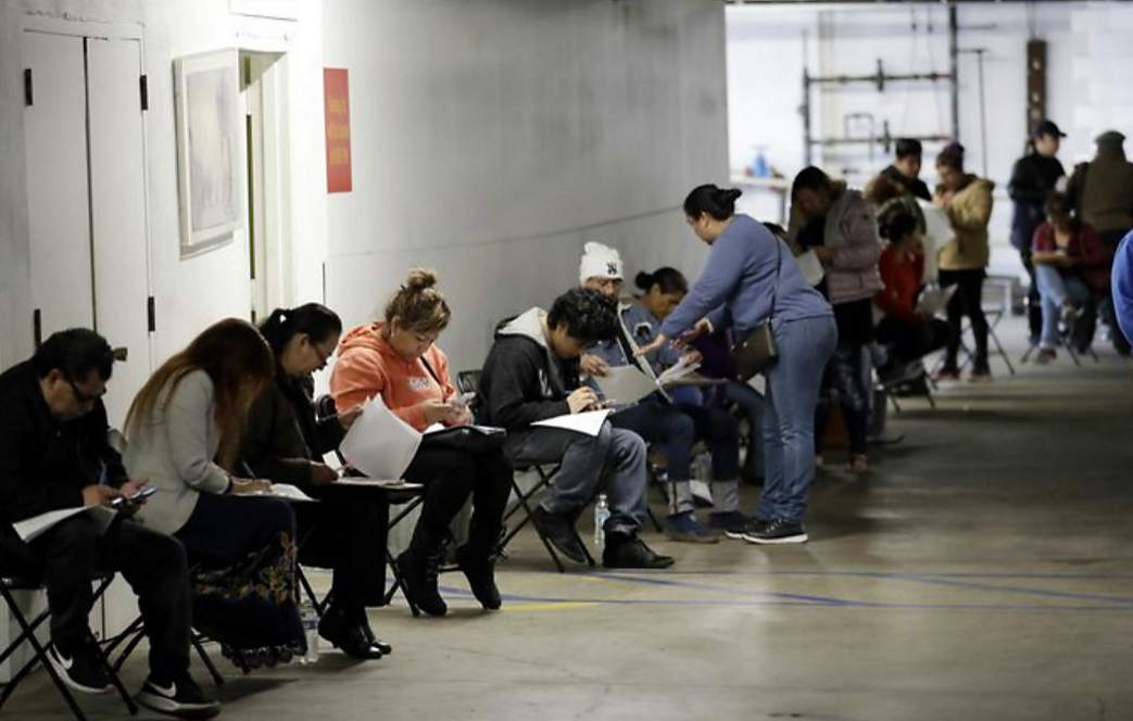 美国洛杉矶,新冠疫情期间申领失业救助金的美国民众。美联社
