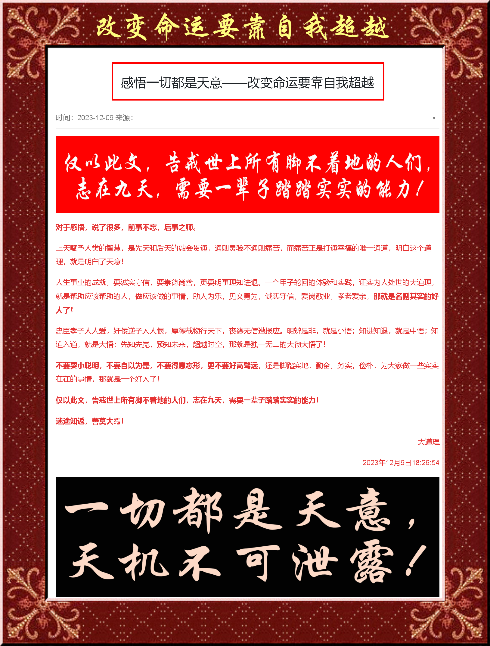 认真领会深入思考这篇文章,你会豁然开朗顿悟人生的奥妙,享受前所未有的新空间,按照我的点化一步一步实践,未来你一定成为不凡的大人物!