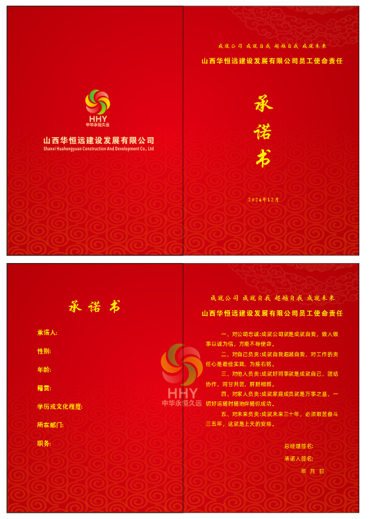 承诺五言,五福临门。上天赐福,福满人间。忠诚企业,超越自我。