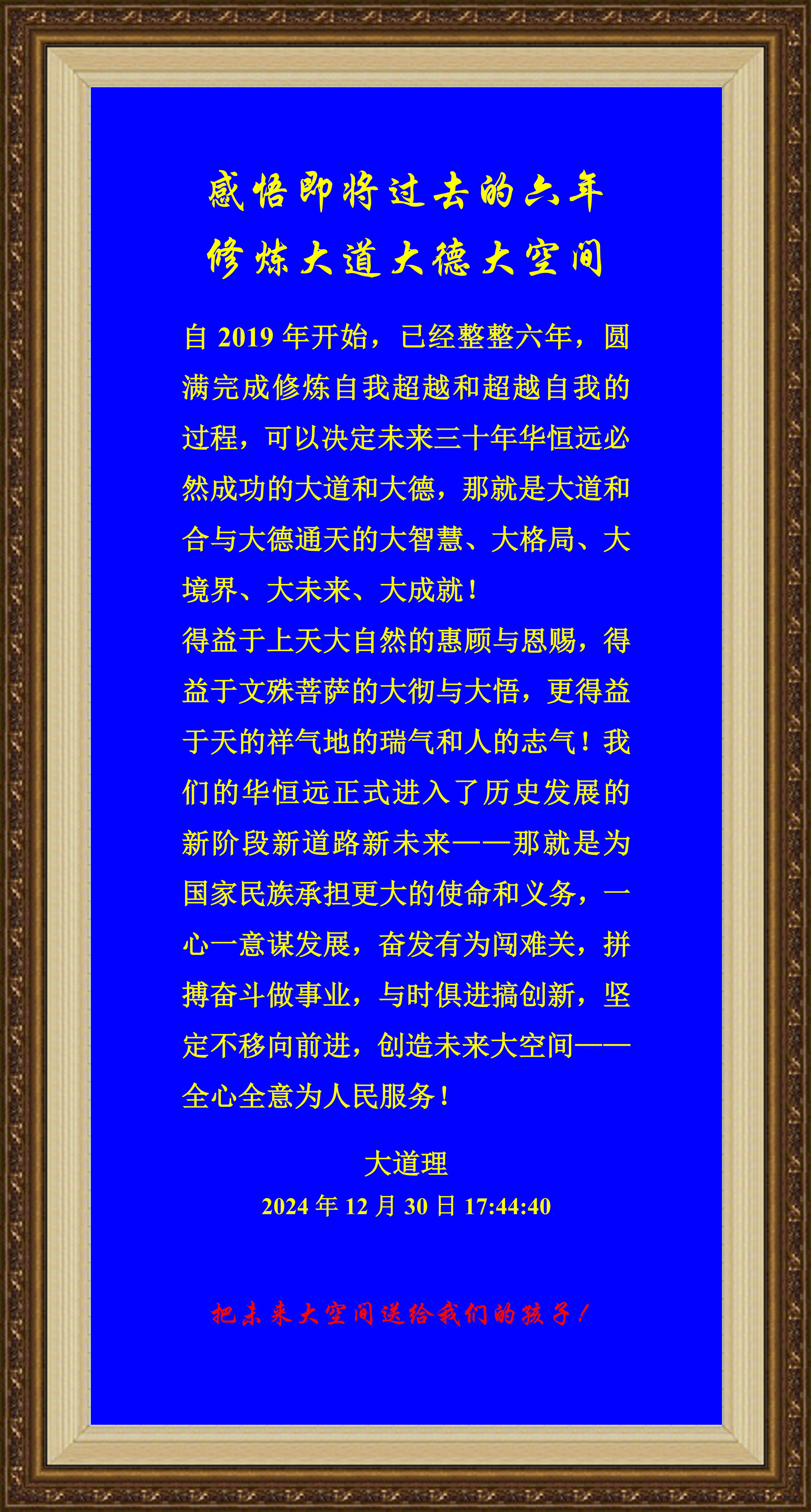 自2019年开始,已经整整六年,圆满完成修炼自我超越和超越自我的过程,可以决定未来三十年太阳成tyc7111cc官网必然成功的大道和大德,那就是大道和合与大德通天的大智慧、大格局、大境界、大未来、大成就!