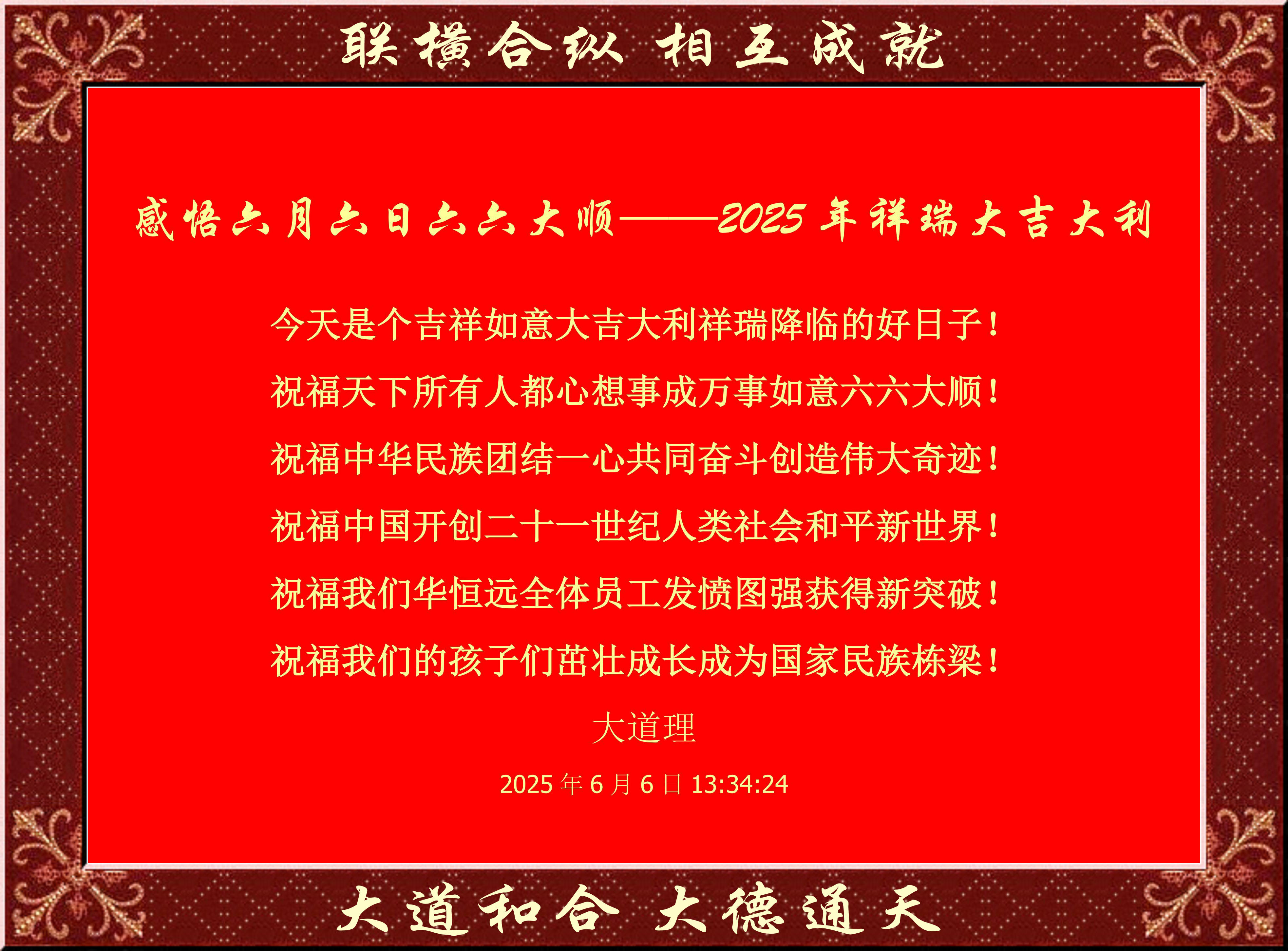 祝福天下所有人都心想事成万事如意六六大顺!