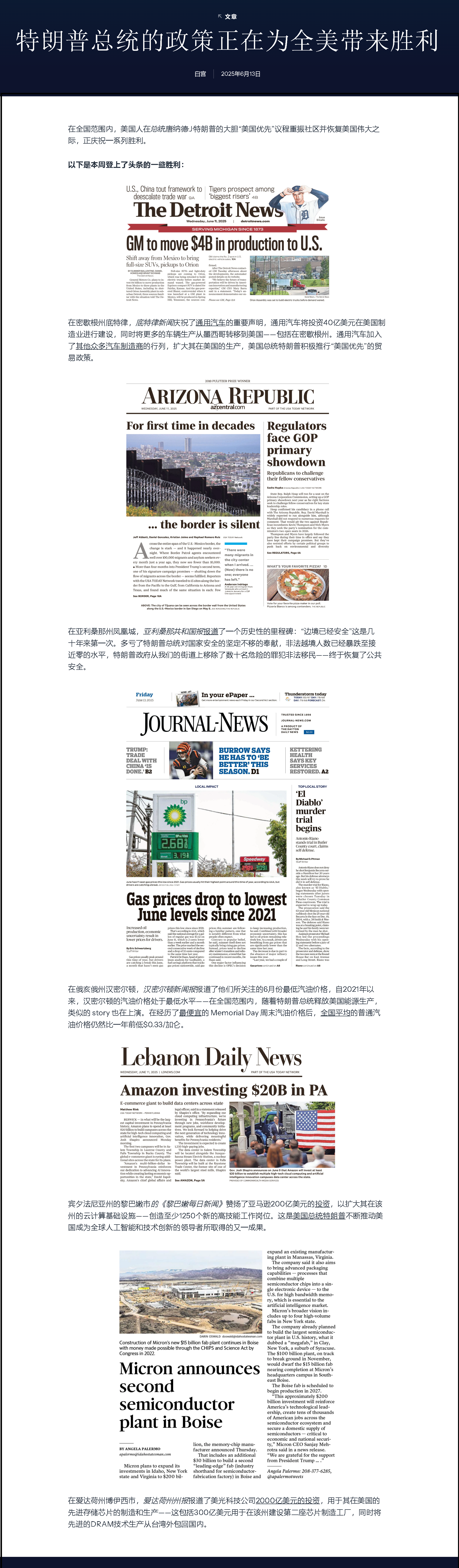 感悟特朗普总统的政策正在为全美带来胜利——美国媒体今天的欺骗正在为明天的谎言背书!