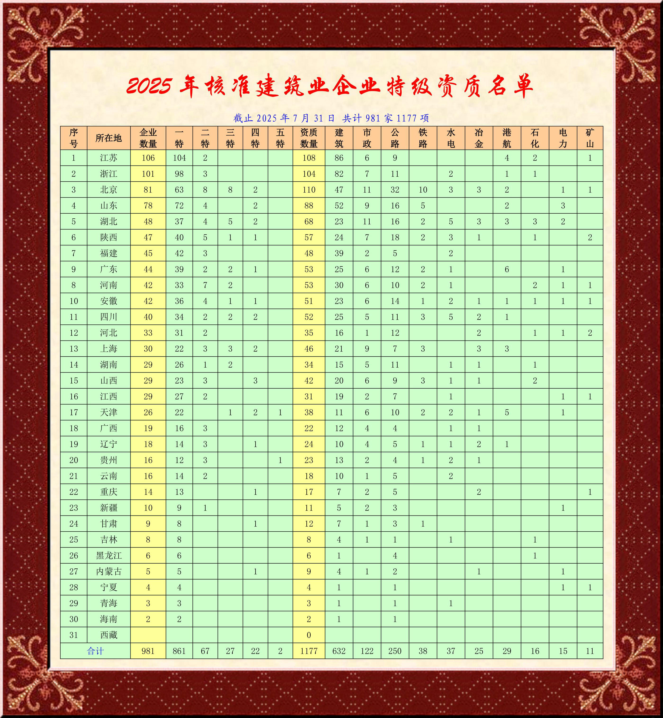 自2012年实施建筑业企业资质等级就位以来,特级企业第一方阵从十三年前的200多家,今年突破1000家已成定局,这是多么大的空间和变化?!