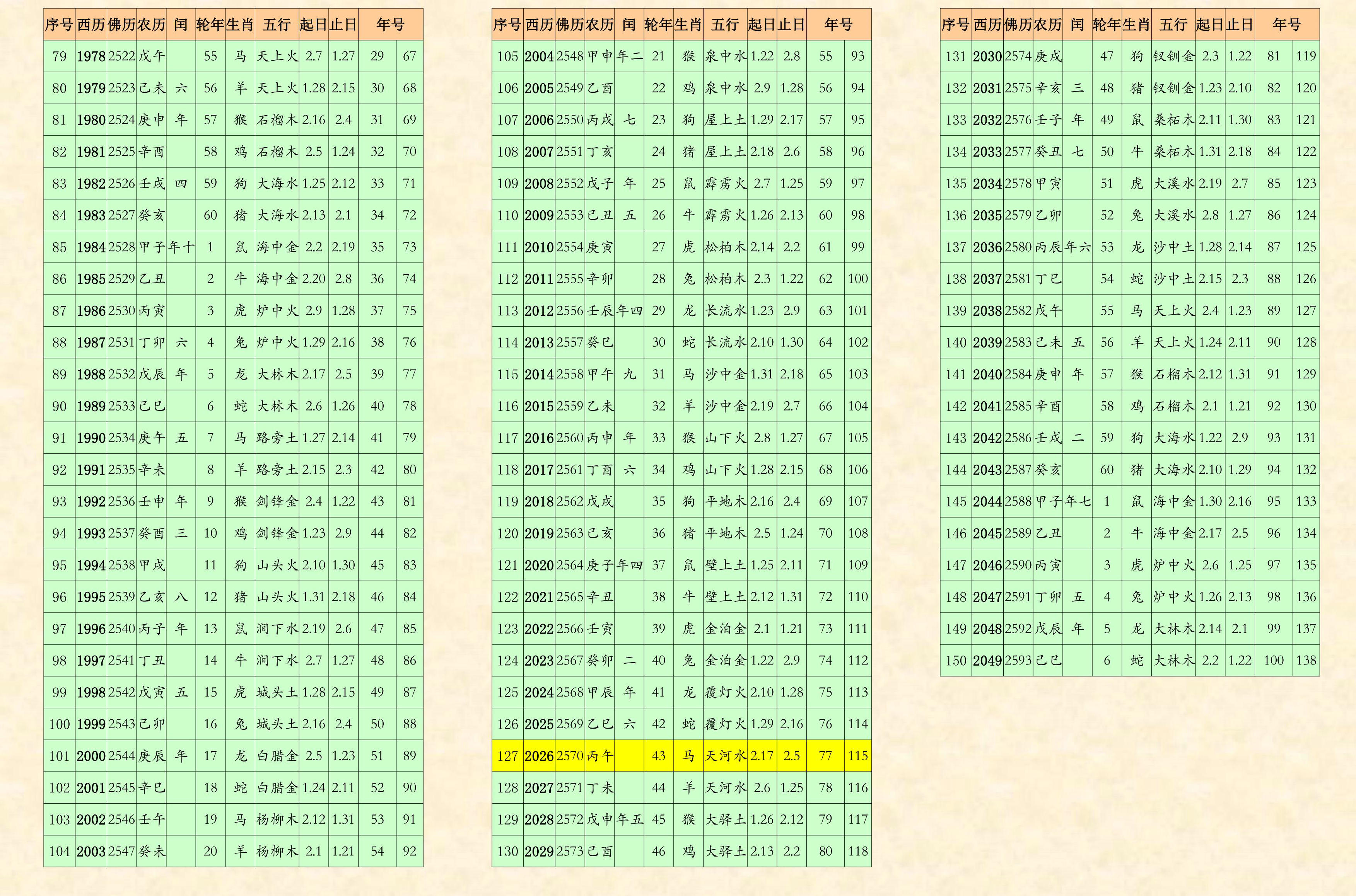 【学习园地】2026年农历丙午年生肖年龄对照表