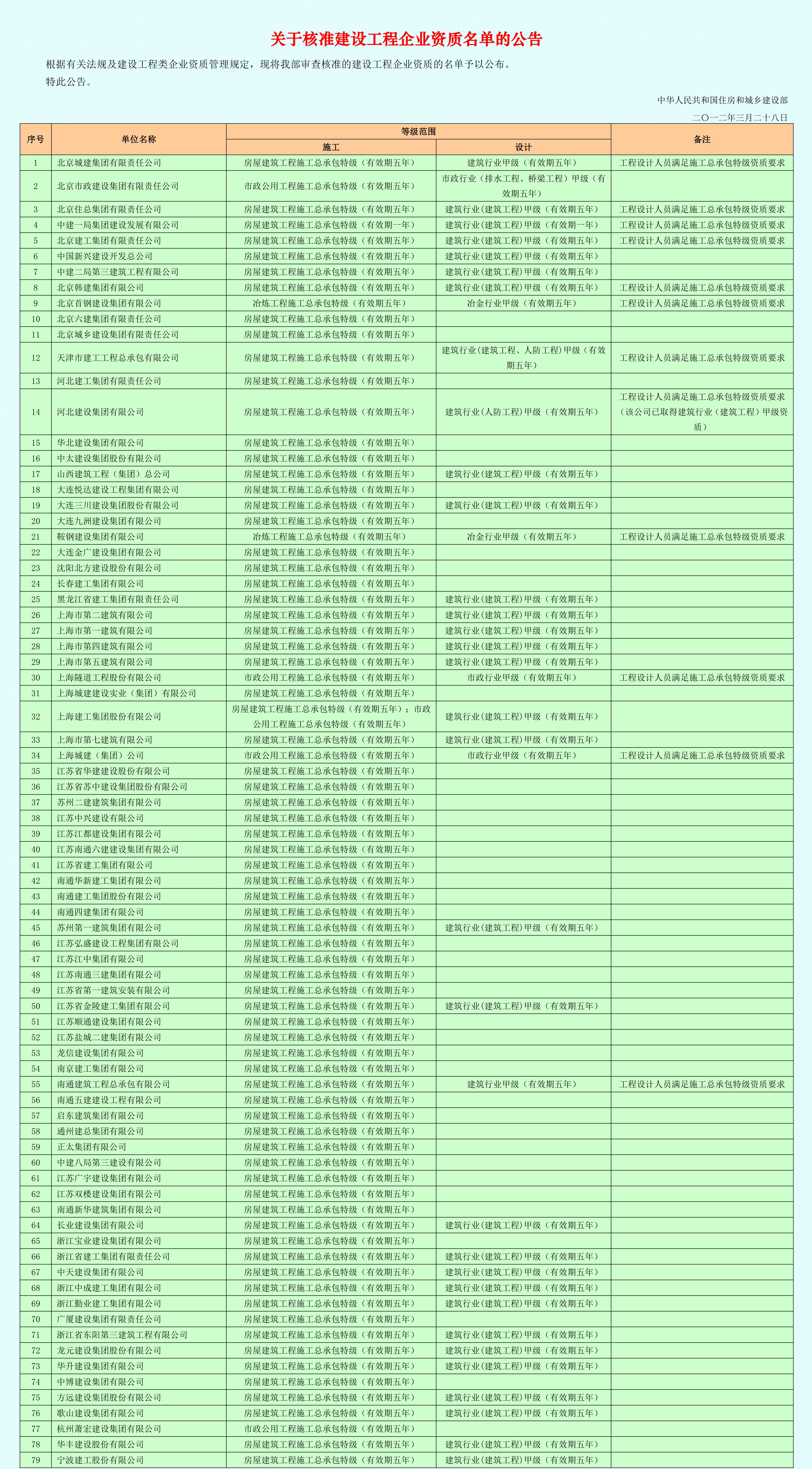 这几天,整理行业资料,看到十二年前住建部第一次核准特级资质企业公告,贴出来和大家分享,从中感悟建筑业未来发展大趋势,我们应该如何面对日趋激烈的行业竞争新形势,如何发挥战略引领做大做强,赢得未来更大的发展空间!