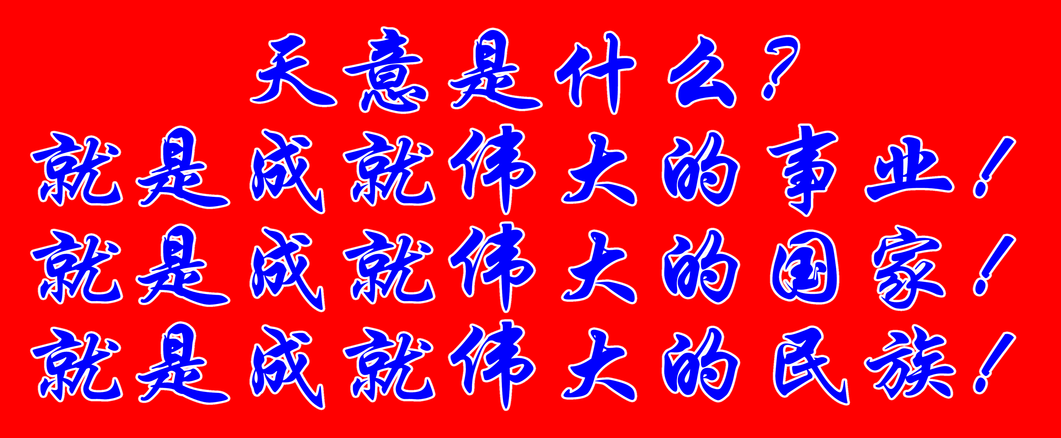 天意是什么?就是成就伟大的事业!就是成就伟大的国家!就是成就伟大的民族!