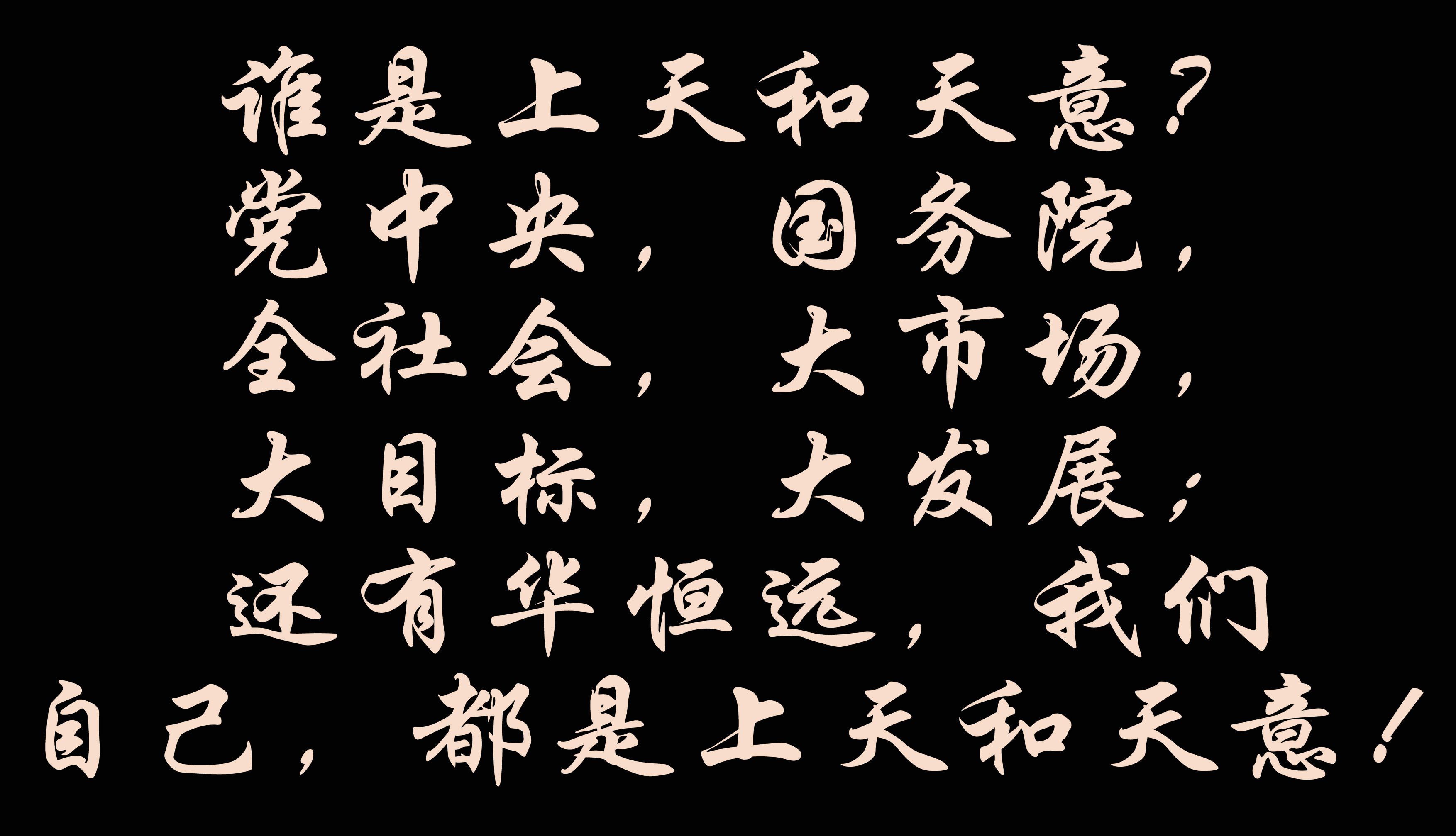谁是上天和天意?党中央,国务院,全社会,大市场,大目标,大发展;还有太阳成tyc7111cc官网,我们自己,都是上天和天意!