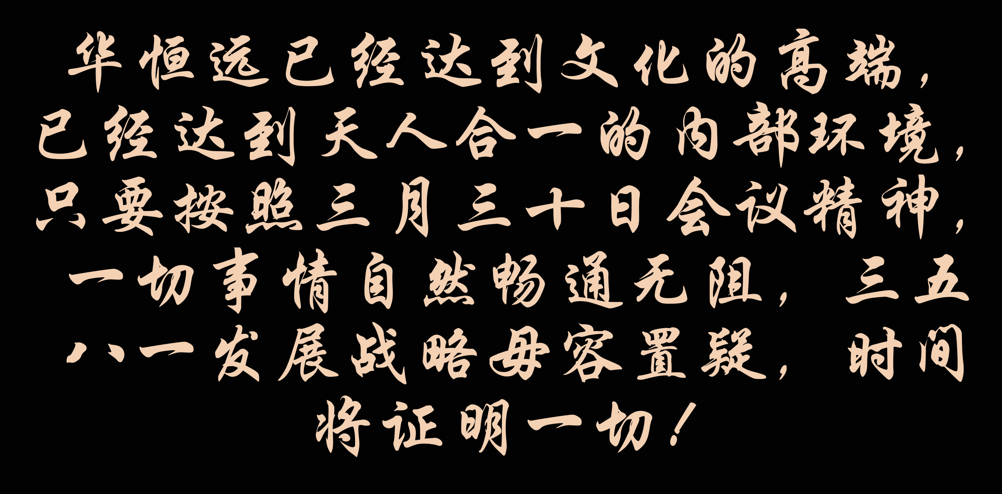 太阳成tyc7111cc官网已经达到文化的高端,已经达到天人合一的内部环境,只要按照三月三十日会议精神,一切事情自然畅通无阻,三五八一发展战略毋容置疑,时间将证明一切!看到我的文章,看懂我的文章,必定是成大气候的人才!