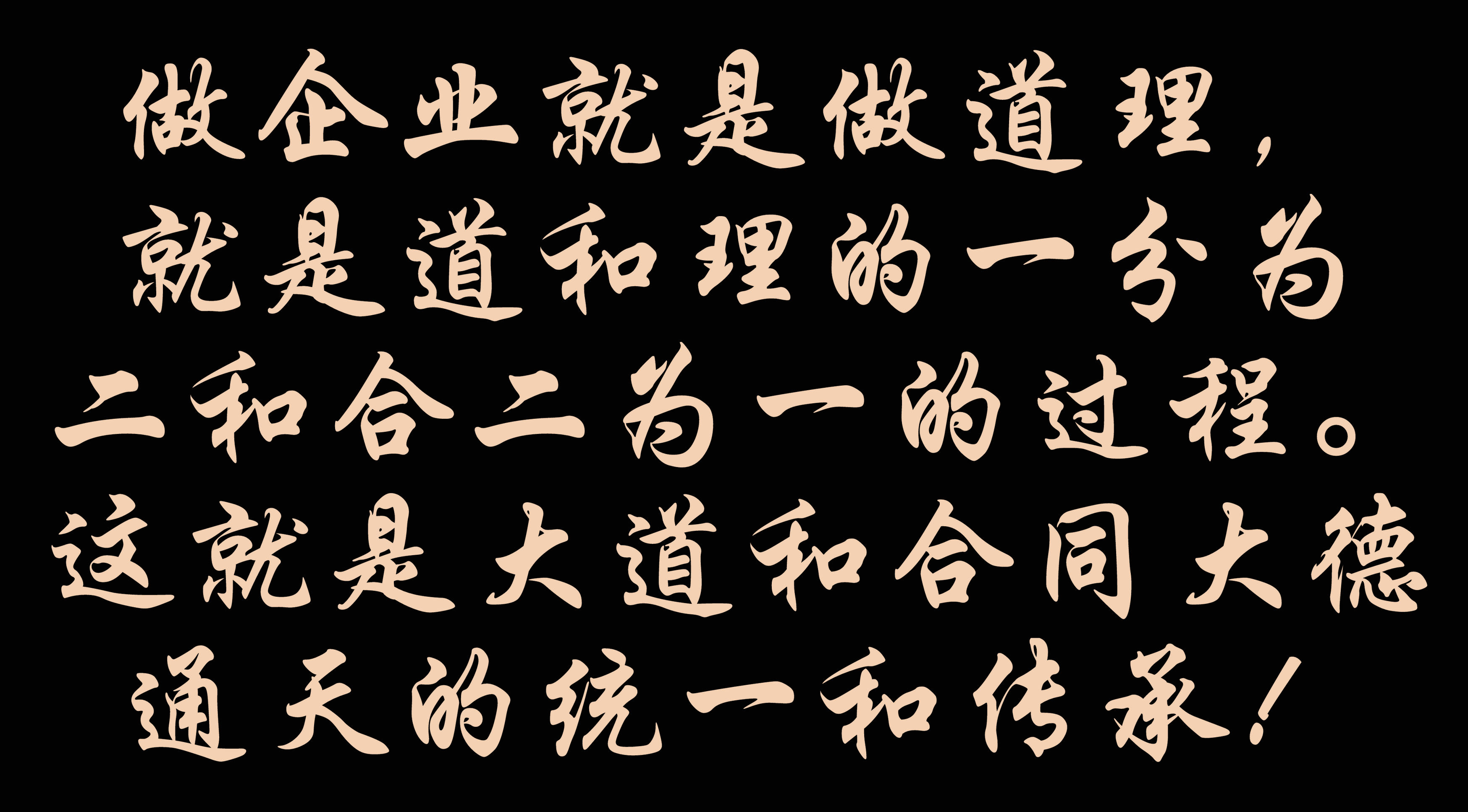 大自然一切事物,都是一个非常简单的和与不和,合与不合的利益关系,做企业就是做道理,就是道和理的一分为二和合二为一的过程。这就是大道和合同大德通天的统一和传承!