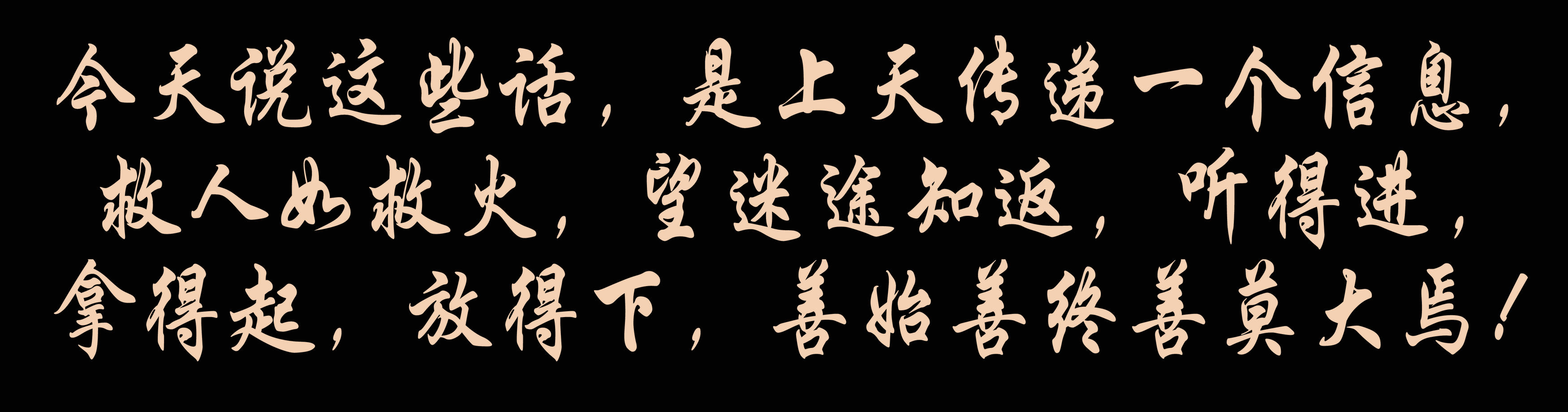 今天说这些话,是上天传递一个信息,救人如救火,望迷途知返,听得进,拿得起,放得下,善始善终善莫大焉!