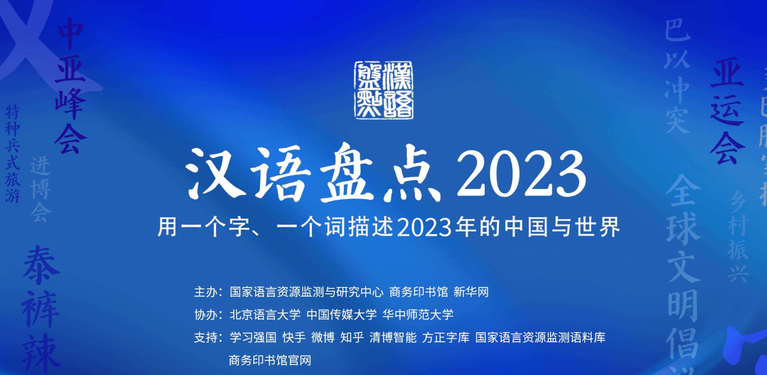 “汉语盘点2023”活动由国家语言资源监测与研究中心、商务印书馆、新华网联合主办,11月20日在京启动。据主办方介绍,活动受到社会广泛关注和全民热情参与,目前已收到推荐字词数千条,在综合网友推荐和专家评议基础上,选出以上各组前五位年度候选字和前五位年度候选词,并最终从中选出一个字和一个词作为“2023年度字词”,揭晓仪式将于12月20日在京举行。