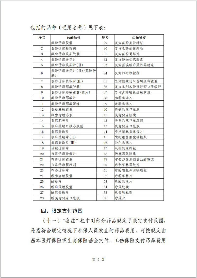 (四)《药品目录》包括限工伤保险基金准予支付费用的品种5个;限生育保险基金准予支付费用的品种4个。工伤保险和生育保险支付药品费用时不区分甲、乙类。