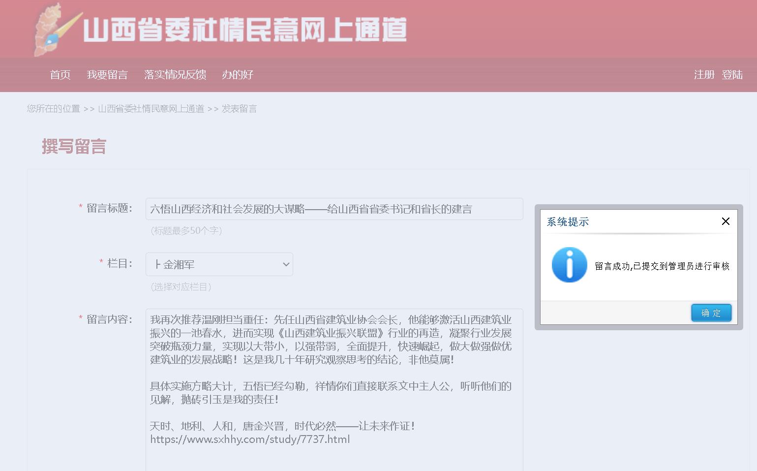 今天是2024年2月27日,农历甲辰年正月十八。我给咱们山西省委书记和省长振兴山西建筑业的建言,是时代的要求,未来的希望,这是上天(大自然天地人三维位一体)的意愿,是习近平新时代中国特色社会主义思想的召唤,也是山西省未来发展活力和动力的大谋大略,对两位山西决策者甲辰人的启示和考验,关系山西未来前途命运发展大空间,大未来,大成就!