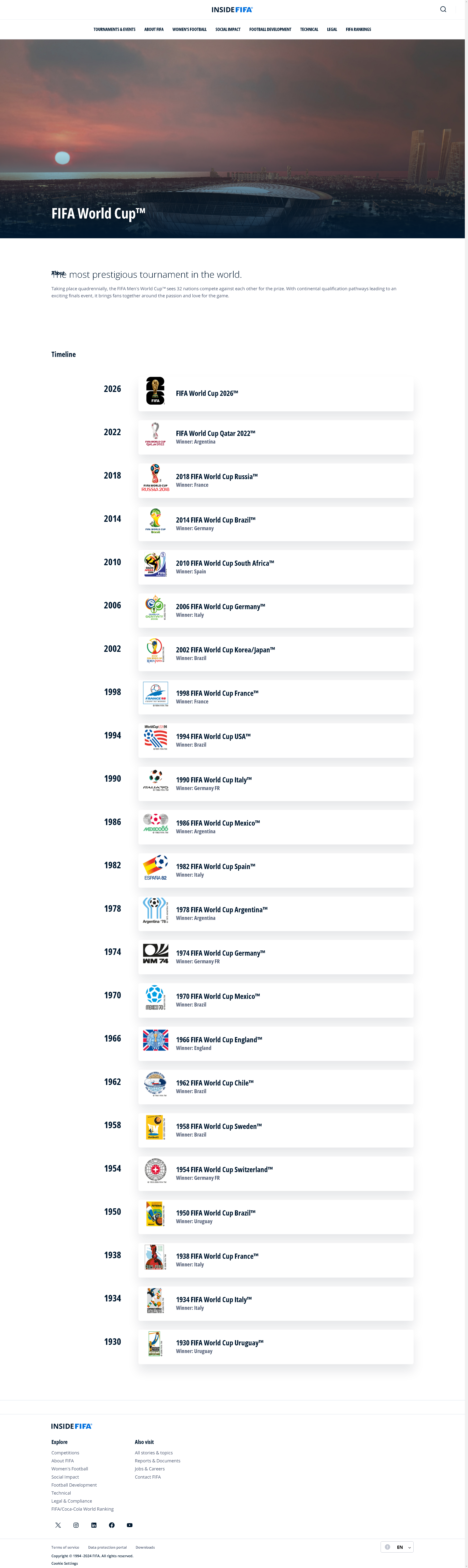 国际足联世界杯(FIFA World Cup)简称「世界杯」,是世界上最高荣誉、最高规格、最高竞技水平、最高知名度的足球比赛,与奥运会并称为全球体育两大最顶级赛事。