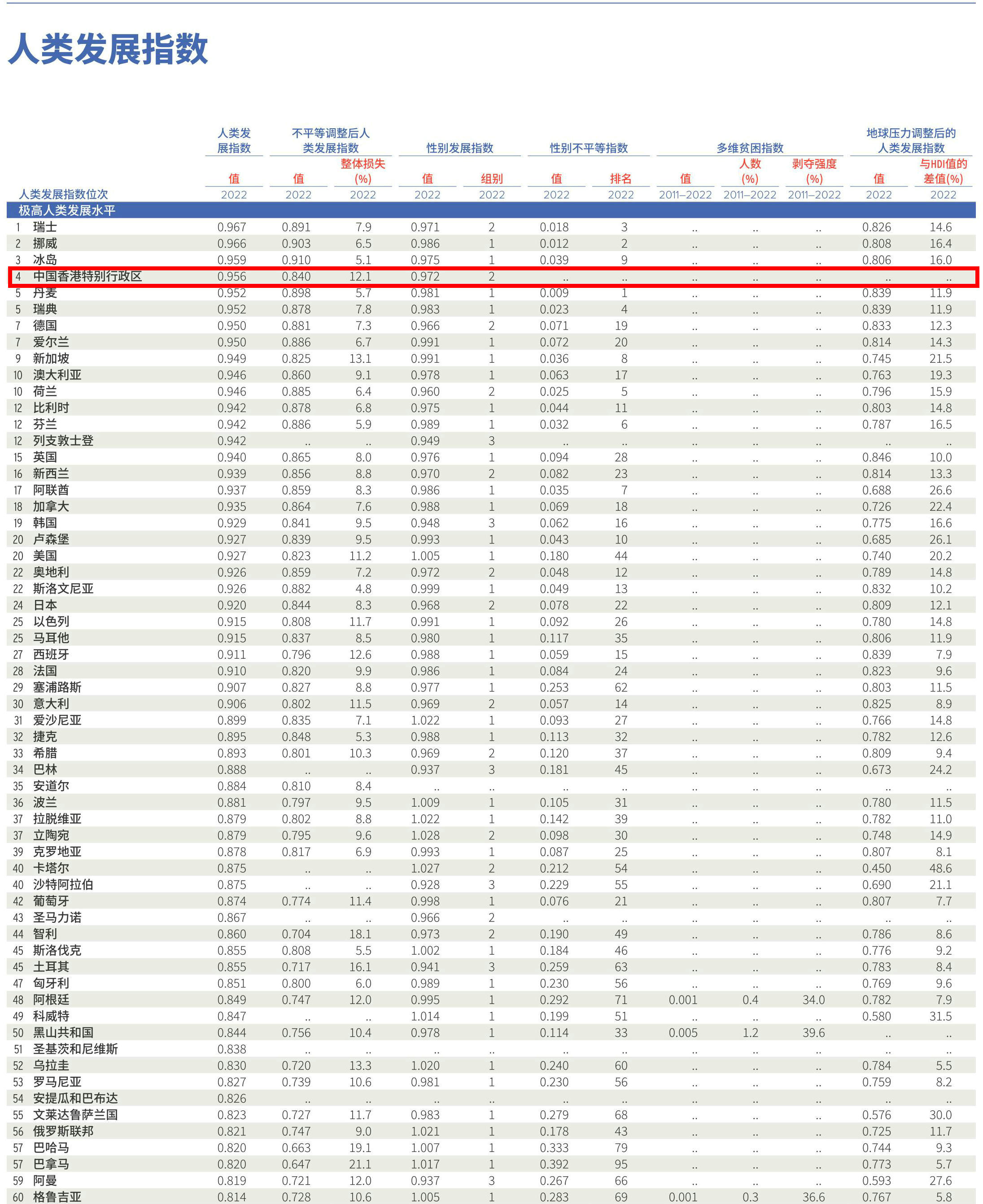 等级 国家或地区 人的发展指数 与2021年相比的变化