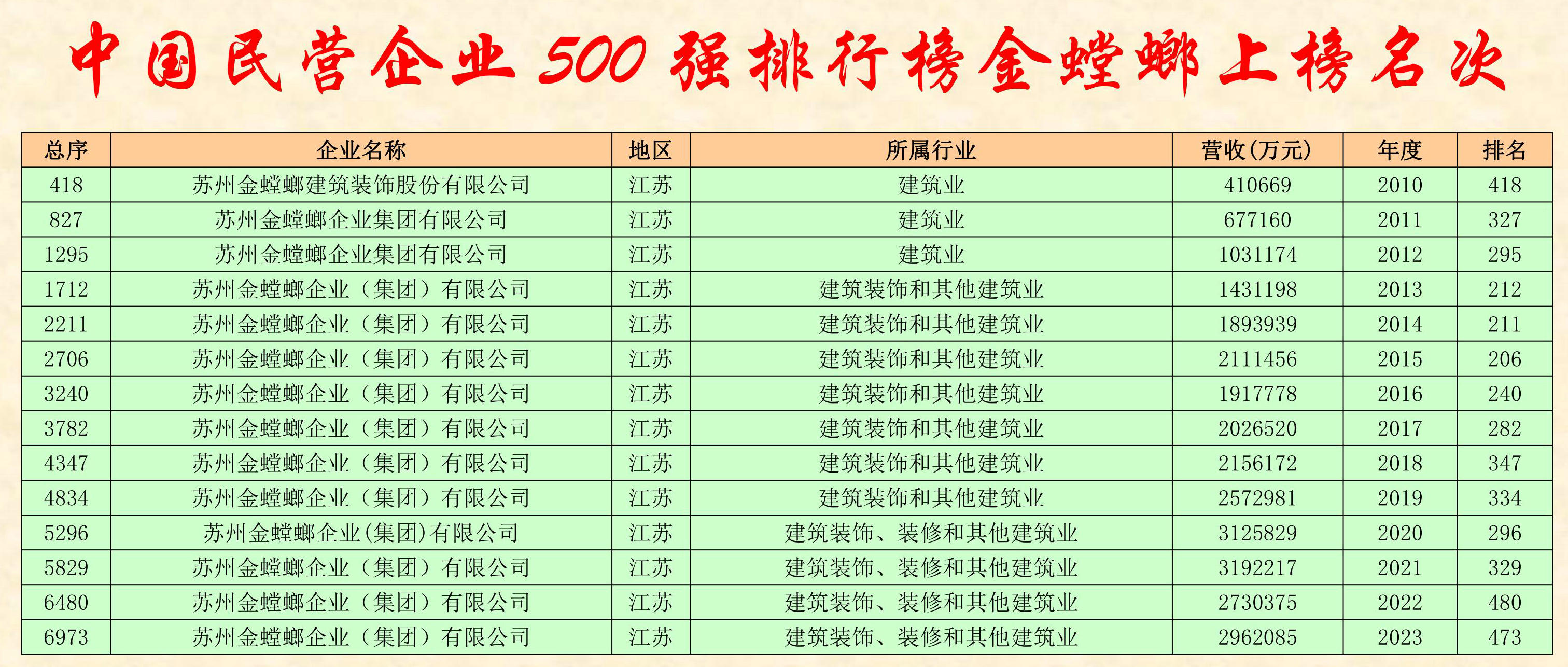1 苏州金螳螂建筑装饰股份有限公司 江苏 建筑业 410669 2010 418